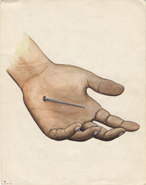 This May, the Archives features “The Story of a Nail,” an evangelism kit using a simple narrative and illustrations to present the story of the crucifixion. Originally developed for radio broadcast by Bob Pierce, founder of both Samaritan’s Purse and World Vision, “The Story of a Nail” was later published as a pamphlet with eight illustrated panels. The pamphlet includes tips and techniques for presenting “The Story of a Nail” to Sunday school classes, Vacation Bible School audiences, and other groups using the “flash card” method to match the colorful panels to narrative cues. Presenters are encouraged to memorize the KJV scripture verses in advance and to maintain eye contact throughout the story.