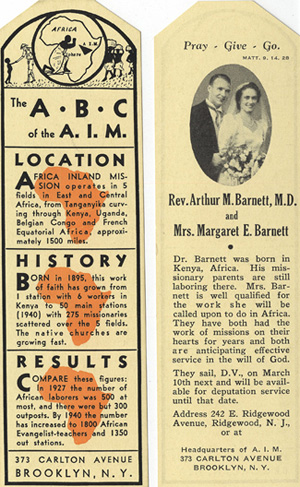 The Archives staff first became aware of the Zamzam story in 1979 when processing the records of Collection 81: Records of Africa Inland Mission. Among the hundreds of thousands of documents in that collection were the postcards of passenger William Mundy. An AIM missionary en route to Nyakack, Kenya with his wife Lila to serve the Luo people, Mundy spent the duration of the war in a German internment camp until it was liberated in 1945. His postcards document these four long years of imprisonment. The AIM records also contain affidavits and other documents from the lawsuit Africa Inland Mission and other agencies filed against the shipping company that owned the Zamzam to recoup the lost cargo. In addition to these treasures preserved in Collection 81, the Archives has collected materials from a variety of sources, including oral history interviews, written testimonies, and other ephemera from survivors, now held in Collection 624. These stories scattered throughout the Zamzam ephemera and AIM records tell only a small piece of the intersecting historical tapestry of missionary endeavor, World War II, and Christianity in Africa.