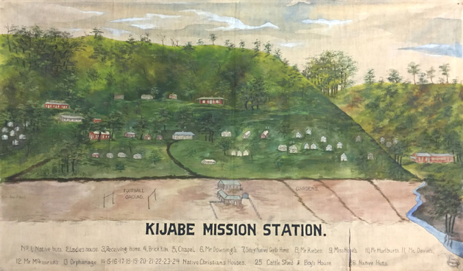 The item featured below is the oldest AIM map held in the Archives, a vivid, hand-painted depiction of the mission station in Kijabe, Kenya, dating between 1907 and 1909. The map also documents a seminal period in AIM history: the consolidation of AIM missionary service in Kenya.