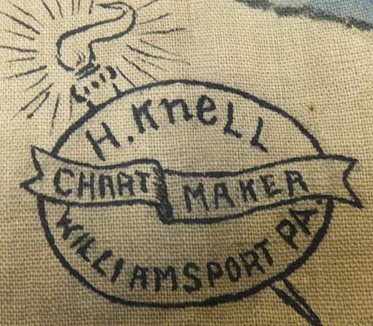 The origins and purpose of the painting are unknown but can be guessed at. In the lower left hand corner is a logo identifying H. Knell of Williamsport as the painter. There was a Henry Knell living in Williamsport in 1912 and Williamsport was about 180 miles from the Mission’s then USA headquarters in Philadelphia, Pennsylvania. The painting came to the Archives many decades later from the AIM headquarters in Pearl River, New York. So the painting was created in the United States and probably used in the United States. Knell most likely worked from photos or maps or pictures supplied by AIM. Perhaps the painting was used at mission and church conferences to help illustrate their work.
