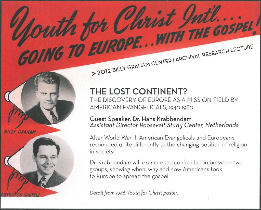 When Robert Shuster, long time archivist for the Wheaton College Billy Graham Center, introduced the first Archival Research Lecture in 2008, he explained, “We on the staff have the privilege of meeting a wide range of scholars, Christian workers, and the general public engaged in many different types of research, from preparing a one-woman show, to filming a documentary, to fashioning a website, to researching books, articles, and dissertations on a wide range of topics in Christian and secular history…The purpose of the research lectures is to give the Wheaton campus and community a chance to share in the adventure of learning about these exciting research trips and discoveries…We hope this can be one way that the Archives can contribute to Wheaton’s rich mix of knowledge, experiences and, above all, people.”