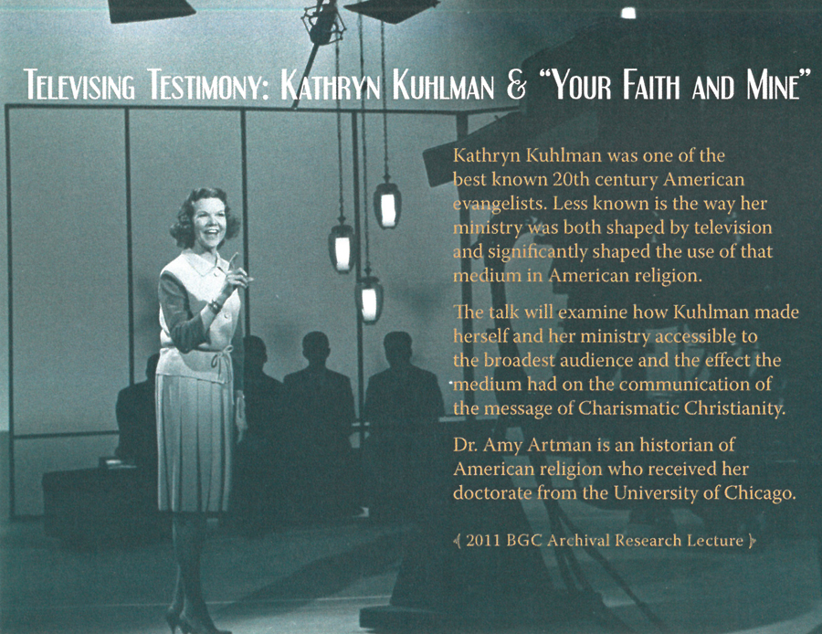 With studies of individuals like Kathryn Kuhlman, Billy Graham, and Elisabeth Elliot or organizations such as Evangelical Fellowship of Mission Agencies, Youth for Christ, and China Inland Mission, the Archival Research Lectures have represented the breadth of evangelical mission history available in the Wheaton College Billy Graham Center Archive collections, as well as the rich scholarship of our researchers.