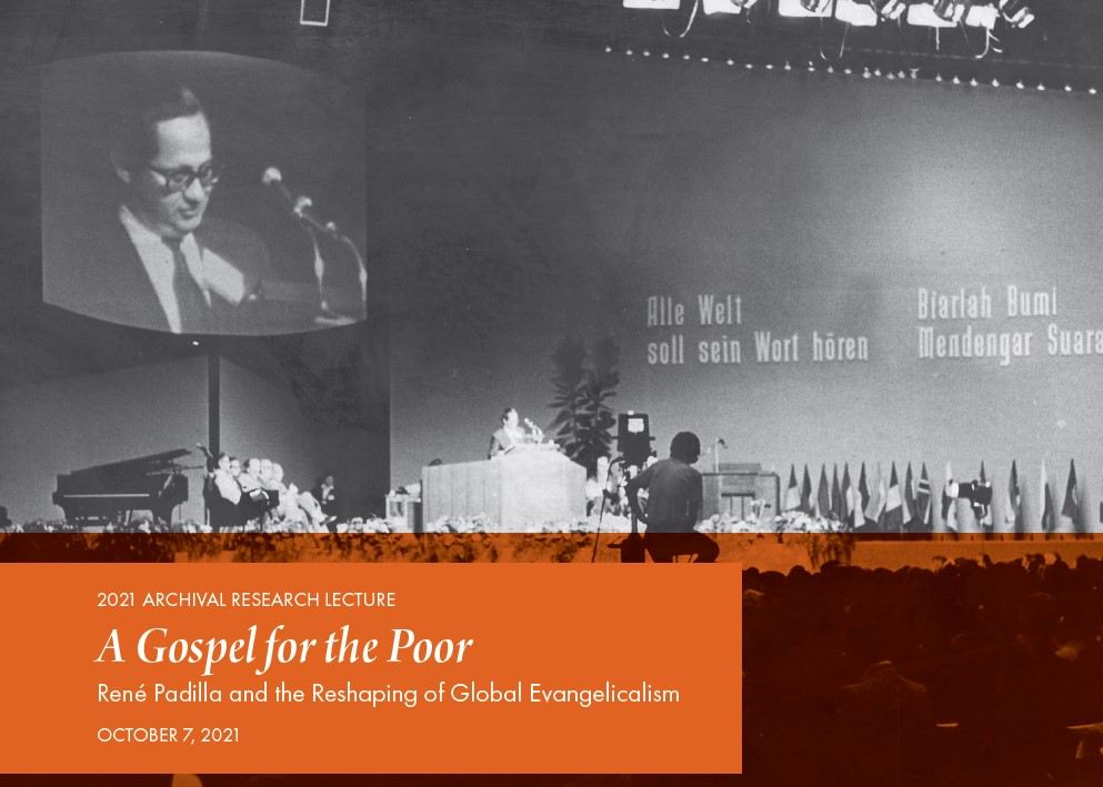 While much of the work of archives takes place behind the scenes, both with archivists in stacks and researchers in reading rooms, this month we invite the wider community into the Archives through the 2021 Archival Research Lecture, A Gospel for the Poor: René Padilla and the Reshaping of Global Evangelicalism, presented by Dr. David Kirkpatrick at Wheaton College on Thursday, October 7th.
