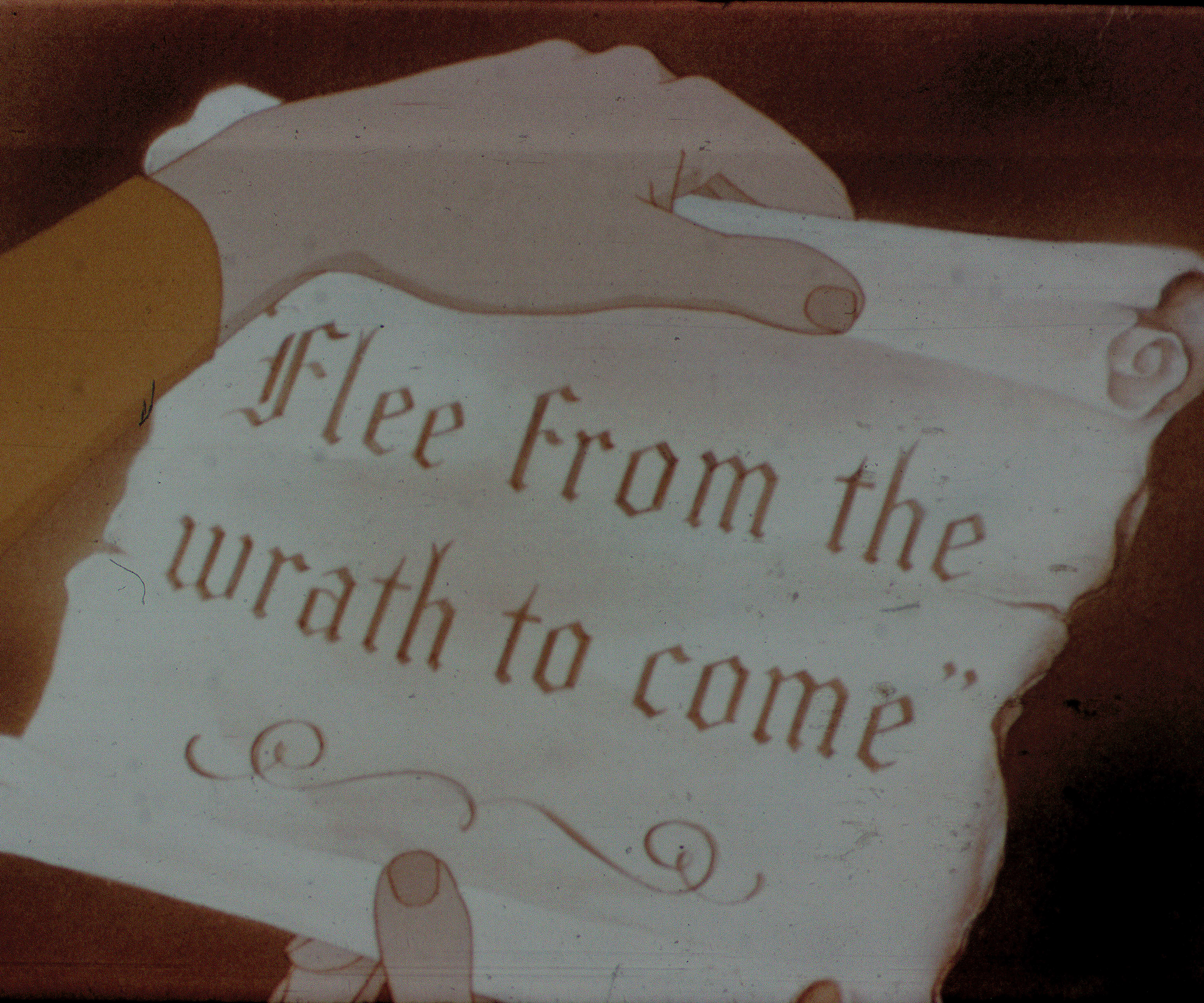 The advertisement for the film proclaimed, “Real thrills await you…as you follow Pilgrim through the Slough of Despond, his meeting Mr. Worldly Wiseman…. And what a joy when he loses is heavy load at the foot of the cross! Many adventures follow and after Christian receives his armor at the Palace Beautiful he has that breathtaking life and death battle with Apollyon.”