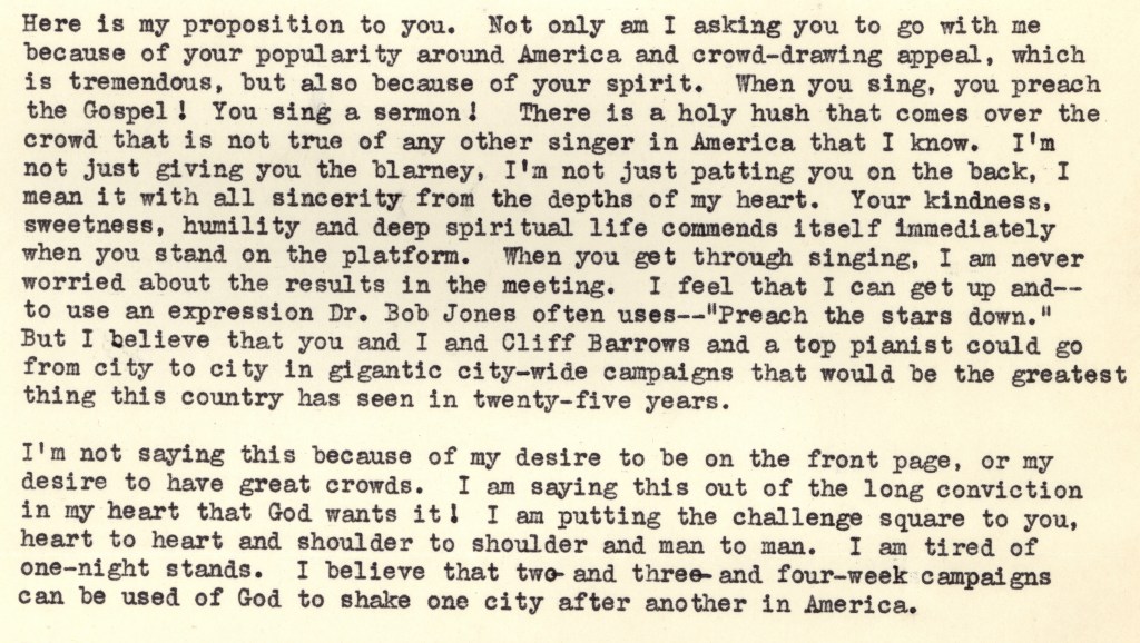 CN 541: Papers of George Beverly Shea (11.1 cubic ft.) Correspondence, sheet music, audio recordings, photographs, hymnbooks. Documentation for the whole of Shea’s career as one of best known gospel singers of the 20th century, especially rich for the beginning of his career and last years of his life, 1931-2010.