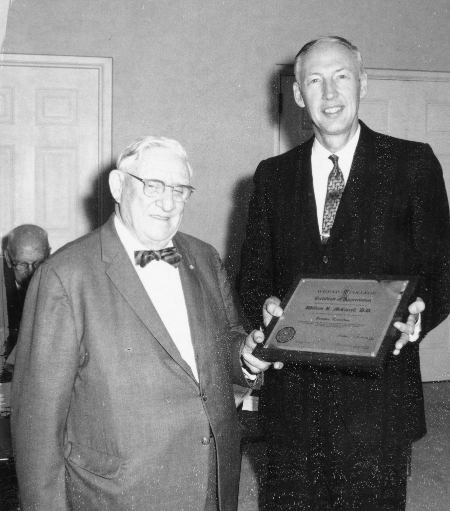 Dr. Charles Blanchard, second President of Wheaton College, who had moderated McCarrell’s ordination, quickly discerned his dedication as pastor and evangelist and asked him to join the Board of Trustees of Wheaton College in 1921. Five years later in 1926, McCarrell participated with President Blanchard and the Board of Trustees in adopting the College’s first official statement of faith. He was also an energetic supporter for a number of Wheaton building projects, including a significant addition to Blanchard Hall and Pierce Chapel. One of the longest serving trustees in Wheaton College history, McCarrell sat on the board for 46 years, retiring in 1967.