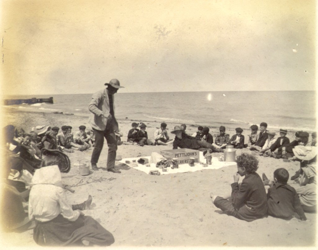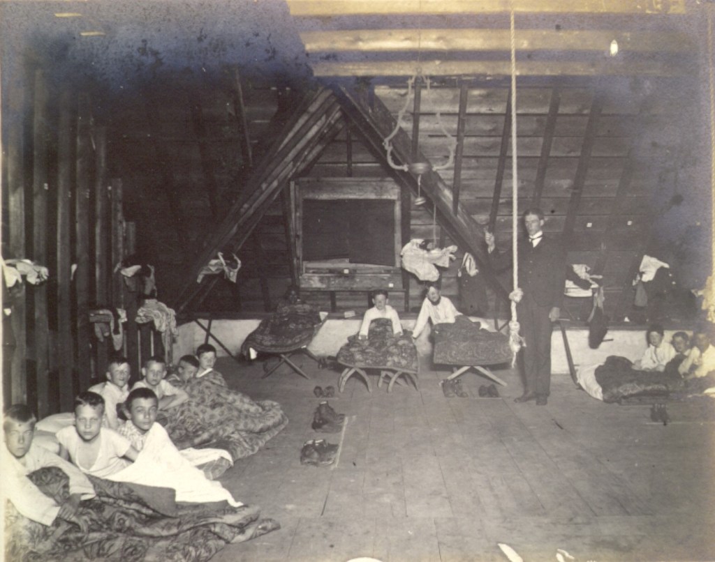 Starting in the late 1870s, many “fresh air” programs for children in urban poverty were established throughout the United States. Sponsored by suburban cities or local newspapers, as well as churches and mission organizations, these programs organized visits for children living in U.S. cities to the fresh air of the suburbs and country, usually for two weeks, although some ran longer. Moody Church’s fresh air work began with a special trip promoted by their Sunday School Association to a suburban estate in the summer of 1899. The success of that venture led to a series of one and two week trips the following summer. By the second year of the program in 1901, their Fresh Air Camps hosted more than 206 children from June to August.