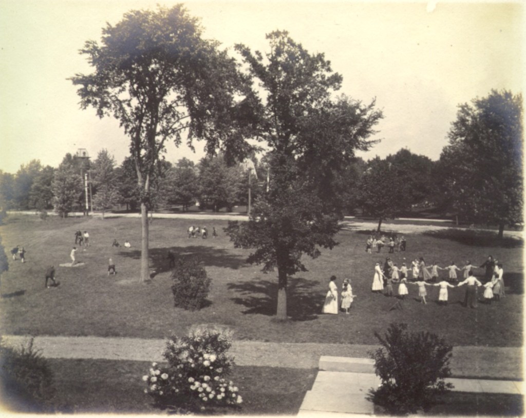 Similar to other early fresh air programs, Moody Church first hosted their camps on suburban estates, where facilities often had to be stretched to house the children. By the 19th century, and especially the post-war era, this impromptu camp setting had given way to two different trends in fresh air work – the model of individuals or small groups hosted by suburban families and that of established camps in more remote or ‘wilderness’ locations. Around 1914, Moody Church moved their fresh air work from the suburbs of Chicago to their newly acquired campground “Restawhile,” in scenic Cedar Lake, Indiana.