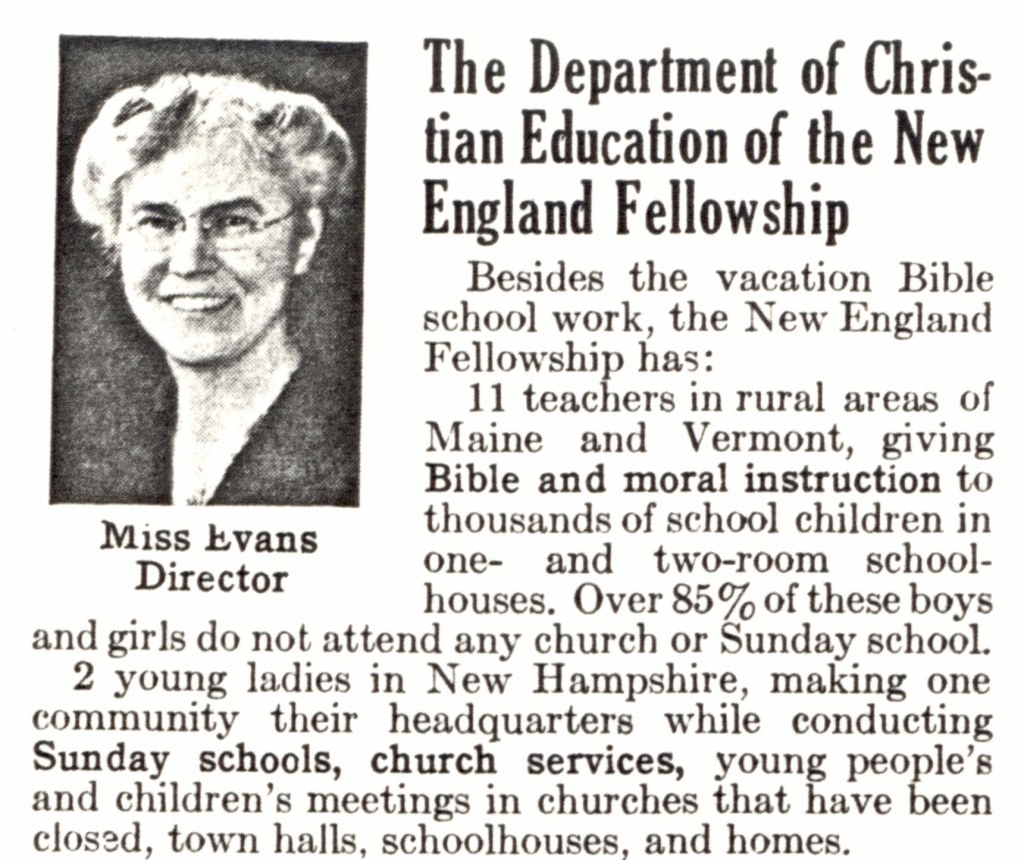 However, Elizabeth never lost sight of her true passion—teaching. While serving on the staff of the New England Fellowship, she taught Daily Vacation Bible Schools (DVBS) across the region. As the demand for her teaching grew, Wright encouraged her to establish week-long training schools for teachers. This led to her appointment as the Christian Education director of the NEF.