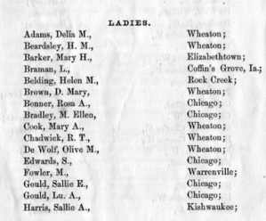 The bulk of the research, documents, and description detailed above were gathered for the Wheaton College Sesquicentennial Exhibit in 2010 by Wheaton historians and archivists, including Prof. David Malone and Dr. David Maas. More information about Wheaton College’s history of race relations and early involvement in the abolitionist cause have been published in Maas’ Marching to the Drumbeat of Abolitionism: Wheaton College During the Civil War (Wheaton College, 2010) and Brian Miller and David B. Malone’s article “Race, Town, and Gown: A Christian College and a White Town Address Race” (Journal of the Illinois State Historical Society, 2019).