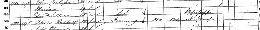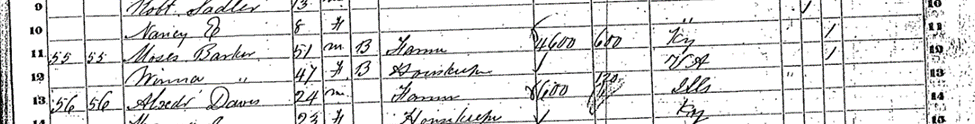 As the 1860 census indicates, Moses Barker, Mary’s father, was a farmer whose property value of $4,600 made him one of the wealthiest men in the county. Reviewing the census data, the extended Barker family appear to be the only African Americans in their immediate community (see the “B” in their census entry), although the neighboring Gallatin County’s Shawneetown had one of the largest populations of African American settlers in Illinois. The slash marks in the far-right columns of the census also indicate that neither of Mary’s parents could read or write.