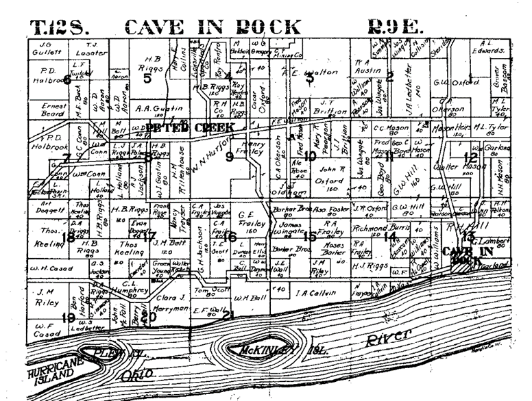 Mary Barker was raised in Hardin County, one of the southernmost Illinois counties on the Ohio River. In the 1860-1861 Wheaton College Catalogue, she lists her residence as Cave-in-Rock, just across the Ohio River from Kentucky. Based on state land sale records, the section in which her family’s farm was located can be pinpointed.