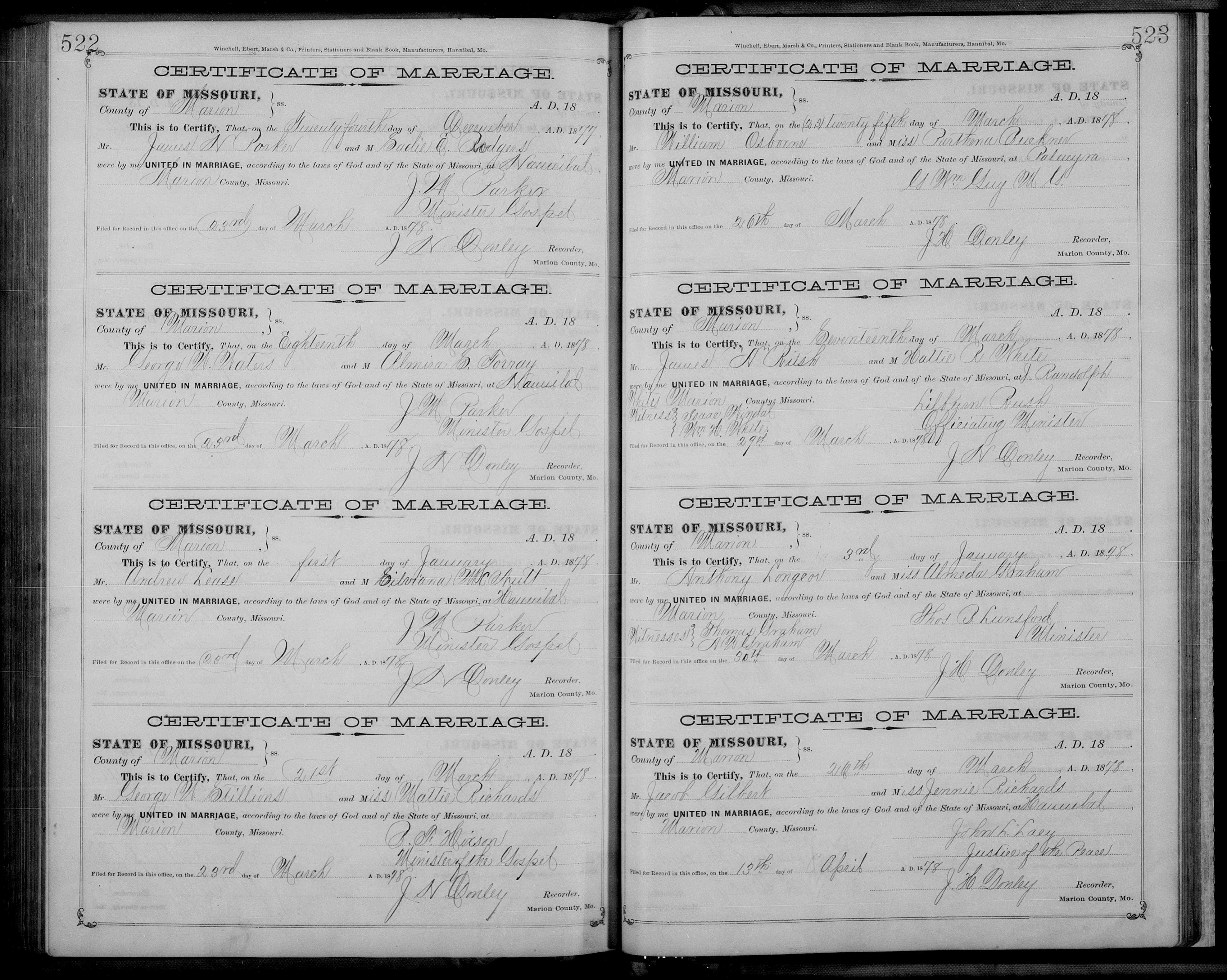 Upon leaving Wheaton College, Osborne briefly moved to Quincy, Illinois before crossing the Mississippi River to live in Monroe City, Missouri in 1877. The next year he married Parthena Buckner and found work as a teacher and a farmer. While residing in Monroe City, the Osbornes became connected with the African Methodist Episcopal Church and, in 1886, Mr. Osborne was ordained as a minister in the AME. For the next five decades, Rev. Osborne pastored churches in Seattle, Washington, Helena, Montana, Louisiana, Missouri, and Omaha, Nebraska.