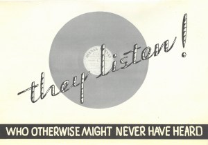 Joy Ridderhof and Gospel Recordings pioneered not only a ministry model but also popularized new playback equipment. Gramophone players of the era were heavy, unwieldy, and highly susceptible to deterioration in the humid climates around the world. Over the years, Gospel Recordings has relied on simple hand-cranked audio players without batteries, including Cardtalk (featured at the beginning of this clip from the PBS documentary The Tailenders) and later cassette tape players.