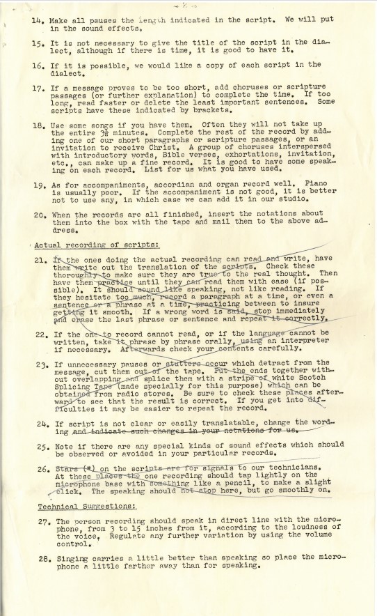 A pivotal shift occurred in 1944, transforming the Los Angeles-based ministry into a global recording enterprise and taking Joy Ridderhof back to the mission field. While each week brought new requests from missionaries and Christian workers around the world, even the diverse population of Los Angeles could not provide native speakers for all the languages requested.