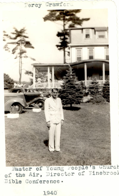 Known to friends as “The Pioneer,” Percy Crawford (1902-1960) was an American evangelist and entrepreneur, who founded, among other things, the Pinebrook Bible Conference, Pinebrook Christian camps for boys and girls, a radio ministry, King’s College, a mission, and a chain of Christian radio and televisions stations. He also produced the first nationwide evangelism television program. These were in addition to the evangelistic tours and “Youtharama” rallies he led across the United States. His restless energy, vision, and strong personality made a deep impression on those who knew or worked with him.