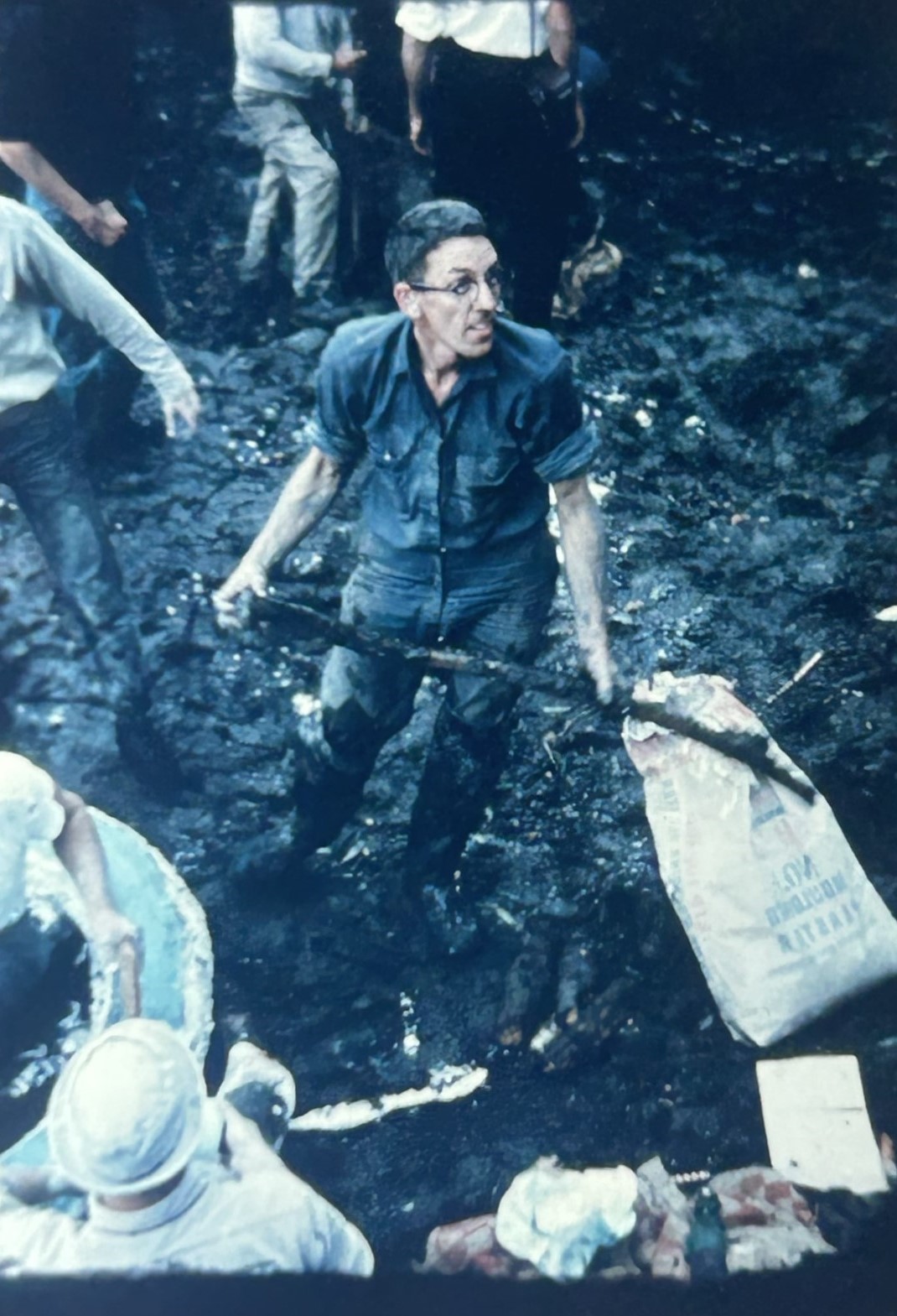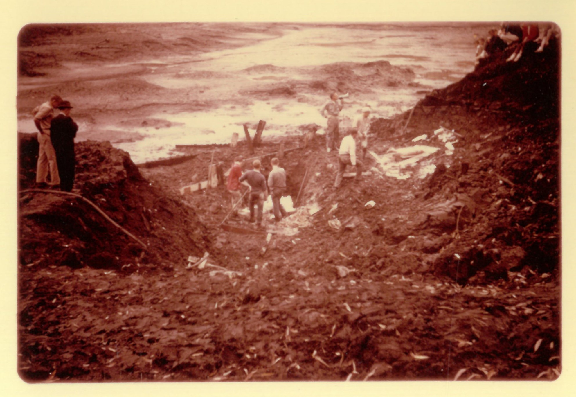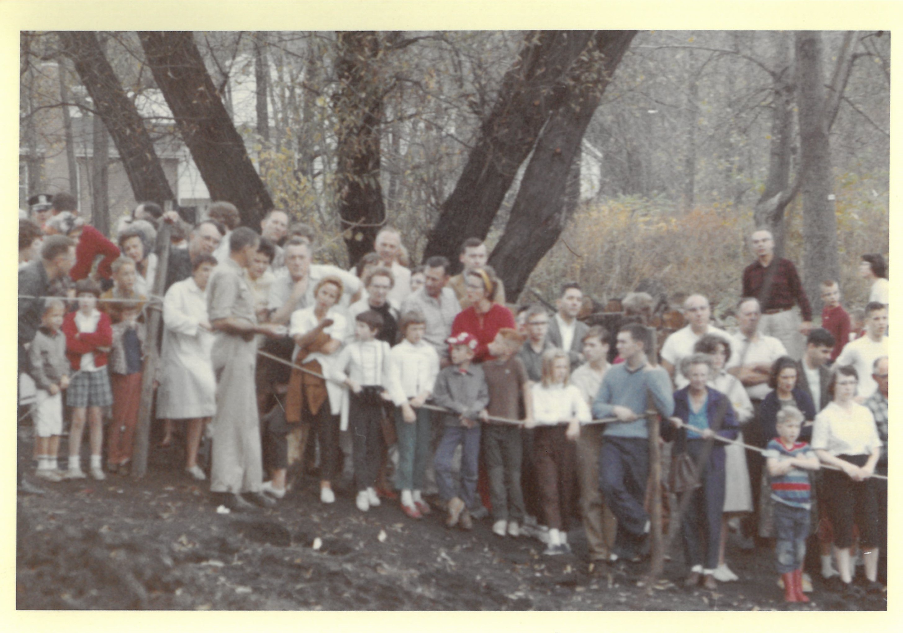 On October 16, 1963, Judge Sam Perry of Glen Ellyn, intending to merely deepen the pond on his property, received much more than he expected when diggers unearthed a prehistoric femur. Upon hearing the news, Judge Perry called for help from Wheaton College, and Dr. Douglas Block of the Geology Department took charge of the site. Judging the find to be geologically significant, the decision was made to drain the lake and excavate. Enlisting Wheaton students from the Geology Department and with technical advice from Orville Gilpin of the Chicago Field Museum, Dr. Block oversaw a strenuous eight-day dig. The muddy excavation was soon joined by hundreds of interested community members and extensive media coverage from local DuPage County and Chicago papers.