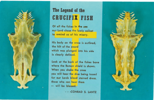 A postcard depicting the “crucifix fish.” Undated, from CN 636, Binder 6