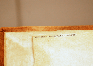 Thanks to a quick Google search, what looks like “LOTHERAN. JACKVILLE ST. LONDON” was revealed to be “SOTHERAN SACKVILLE ST. LONDON”. Sotheran’s of Sackville Street is, according to its website, the oldest antiquarian bookshop in the world, founded in York more than 250 years ago.