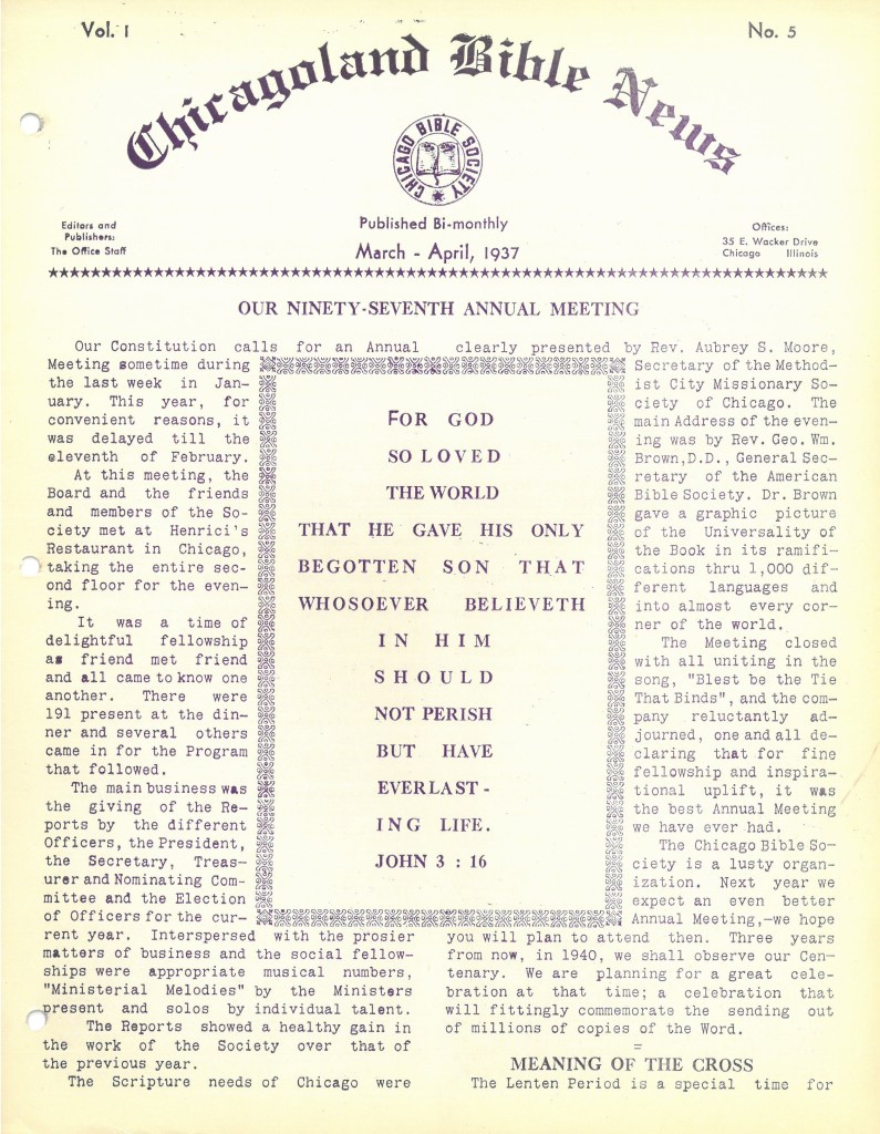 In 2025, Special Collections received two significant donations documenting local Chicago and Wheaton history. In August, the Chicago Bible Society donated several boxes of reports, minutes, and other records chronicling one hundred years of the Society’s efforts to distribute Bibles and promote Bible literacy in and around the city. We also received a box of Wheaton Family Papers containing correspondence, photographs, and other materials related to the Wheaton family, including documents from Warren L. Wheaton and Jesse C. Wheaton, who helped found both the city of Wheaton and Wheaton College.