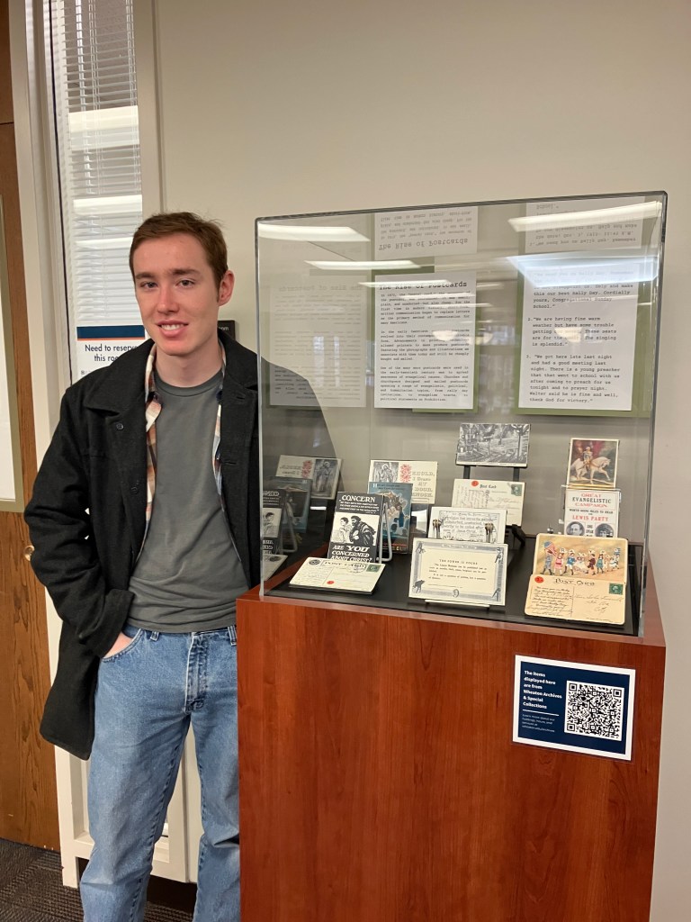 This week, Wheaton Archives & Special Collections shares a guest post from Andre-Ross Gennette, who is interning with the Archives this academic year. Andre-Ross Gennette is a junior at Wheaton College, dual majoring in History and Biblical and Theological Studies, as well as a Wheaton Aequitas Fellow with the cohort for the Fellowship in Public Humanities and the Arts. Along with his work processing Wheaton College alumni scrapbooks, Andre-Ross curated three exhibits for the Archives this spring, including one on the Archives’ extensive collection of religious postcards.